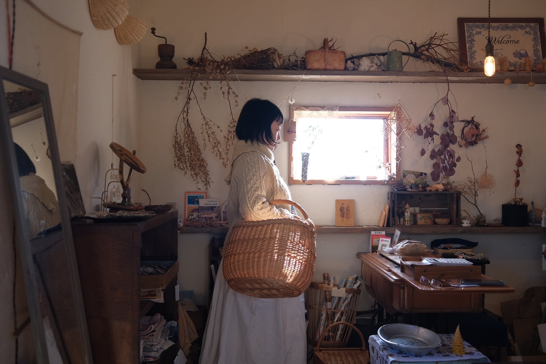 今年9月にラトビアのかご編み工房を訪ね、持って帰ってきた柳のかごです。